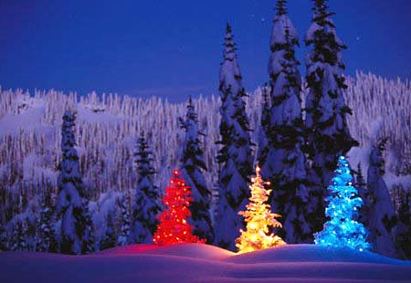 firs, a rainbow trio of Christmas trees lights up the night (send in